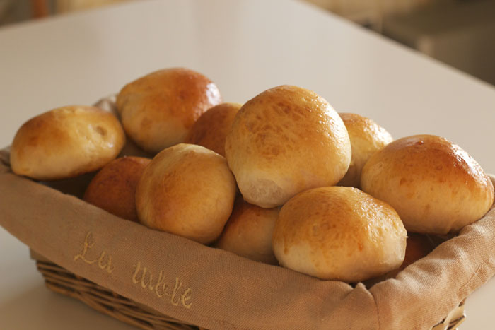Procedimento:sbriciolare il lievito di birra, unire due cucchiaini di zucchero, e circa 150 ml. di latte. Coprire e attendere che sulla superfici si formino delle bollicine. Mettere il resto del latte a scaldare insieme allo zucchero, al sale e al burro fuso. Sciogliere bene tutto. Mettere nella planetaria la farina. Unire il latte con il lievito. Unire, piano piano, anche il latte con burro, zucchero e sale e proseguire ad impastare molto bene finché la pasta non sarà elastica ed omogenea. Lasciare lievitare per due ore e mezza. Quindi stenderla e formare un filare. Ricavare poi tanti pezzetti che dovranno essere lavorati cercando di tirare i bordi della pasta verso il basso e verso e spingendola verso il centro. Questo permetterà alla superfici di rimanere liscia. Spennellare i panini con del latte e lasciare lievitare ancora 30 minuti. Poi spennellare con un uovo sbattuto e infornare a 210° per 18 minuti circa.