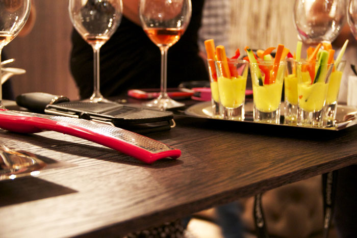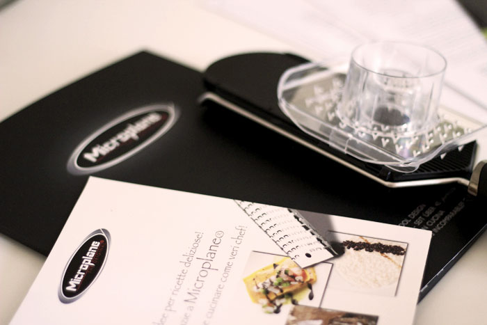 Ieri è stata una giornata impegnativa e piena di impegni. Se non fosse stato per il caldo torrido che non ha dato tregua nemmeno un minuto, sarebbe stato tutto più facile. Lavoro duro senza alzare la testa e poi di corsa nel traffico verso lo showroom Modulnova per scoprire le grattugie Microplane in compagnia di Simone Rugiati. Obiettivo: un appuntamento tutto dedicato alla cucina. Finalmente, dopo caldo e lavoro, un’oasi di piacere tutta per me. Qualche viso conosciuto e altri meno ma tutti con la stessa voglia di sorridere, imparare e lasciarsi cullare da cibo e bollicine.