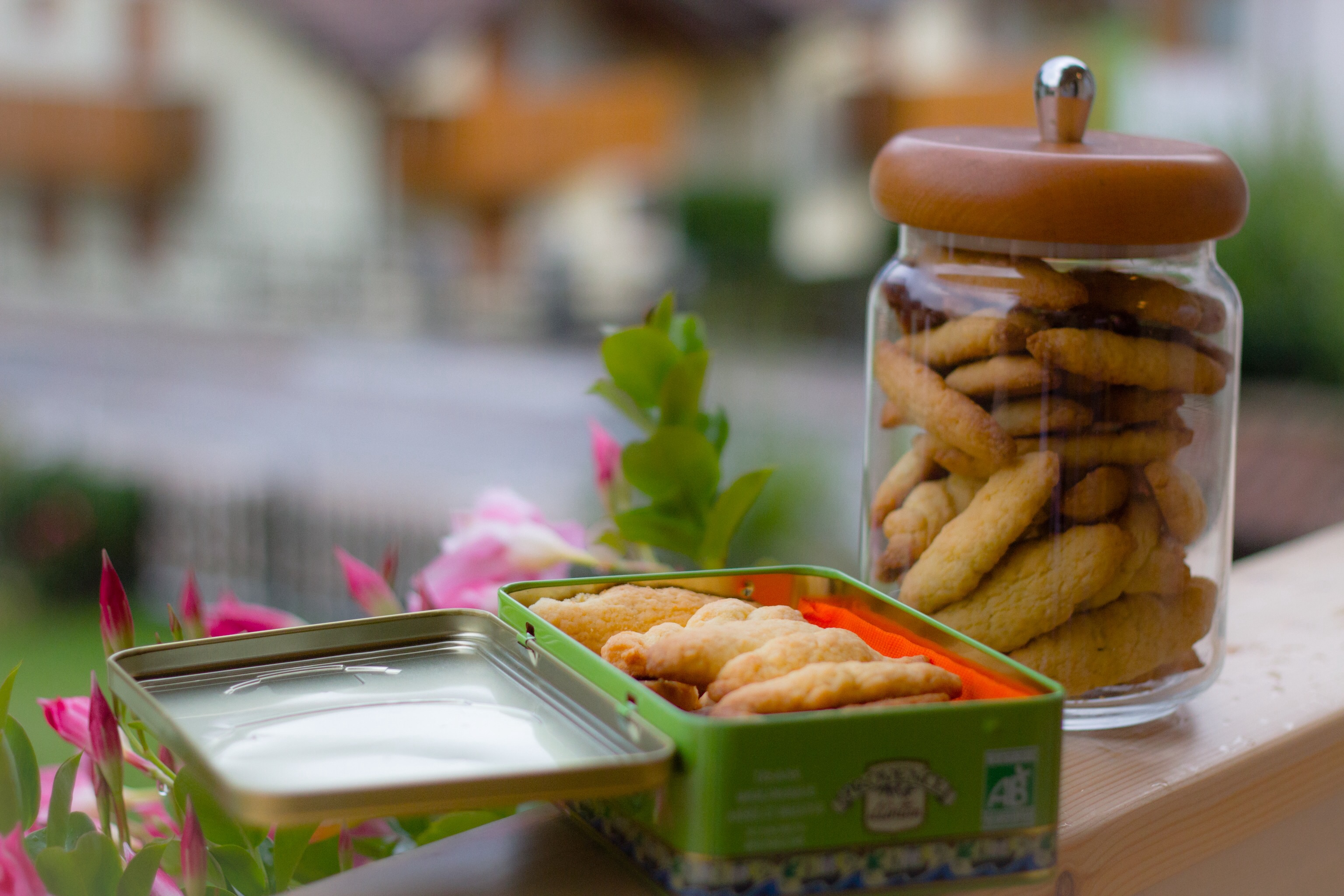 Avevo bisogno di riposare un po’. Lo sto facendo, in parte. Prima parte delle mie vacanze: in montagna con nonna (86 anni) e nipote (2 anni e 9 mesi…quasi) . In due non fanno un secolo, hanno esigenze continue e 83 anni di differenza. Sono felice, però. L’altra mattina scendendo dal piano superiore li ho trovati sul divano, seduti vicini. Lei intenta a leggere la storia di Peter Pan e lui rapito ad ascoltarla con grande attenzione. Ogni tanto la interrompeva per fare una domanda. Conosce perfettamente le risposte ma ha voglia di ascoltarle ancora. In una mano la spada stretta stretta, dall’altra il suo nanocchiale (lo chiama così ed è irresistibile). Lei ha la pazienza e il garbo di chi ha cresciuto tre o quattro generazioni di bambini; è incredibile. Mi ha commossa immensamente. Oggi la nonna ha troppi anni per occuparsi di un nanetto come il mio nipotino ma il suo istinto naturale la rende speciale agli occhi dei cuccioli che sentono istintivamente l’esperienza e la gentilezza di chi è ormai saggio. Con lei ha preparato biscotti, ha cantato e ascoltato le sue filastrocche. E io a fare il lavoro sporco: metterlo a letto, fargli la doccia, preparare pranzo e cena e spiegarli perchè non può guardare tre dvd in una giornata. E’ stato educativo, per me. Avrei voluto un tempo migliore per questi giorni. Il meteo non è stato dalla nostra parte. Appena messo il naso fuori casa (con il sole), la pioggia non ci ha lasciati andare andare in alta montagna. Non abbiamo potuto vedere le cascate o andare al fiume a pucciare i piedi nell’acqua gelida. Pazienza. Ci siamo divertiti lo stesso: ieri pomeriggio abbiamo “messo le mani in pasta”. Per questo ho deciso di rendere pubblica la ricetta dei biscotti della mia nonna che custodisco gelosamente e che, solo lei, riesce a fare in modo unico. Questi biscotti sono conosciuti da tutte le persone che hanno incontrato la nostra famiglia: le nostre maestre, i nostri compagni di tanti anni di scuola (persino all’università), il medico di famiglia, i vicini di casa e tutti i nostri amici. Rappresentano la mia famiglia, il calore dell’amore che lei ha messo nel crescere tante persone, il profumo delle cose semplici, di casa. Avete presente le scatole di latta colorate che contengono biscotti, tisane, tè?!?!!? tutti sanno che lei le colleziona per poi restituirle piene zeppe di caldi e fragranti biscotti. Non proprio una collezione ma un ricordo indelebile di bambina che ritorna alla mente ad ogni sfornata…