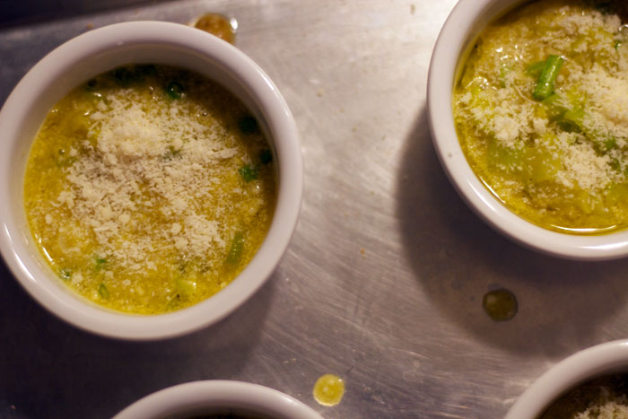 Procedimento: tagliare a rondelle sottili il porro e lavarlo accuratamente. Lasciarlo appassire in una padella antiaderente con un filo di olio evo. Lasciare raffreddare. In un boccale sbattere le uova con il sale, il pepe, il parmigiano. Tagliare i gambi del prezzemolo al coltello. Aggiungere all’interno del boccale i porri e il prezzemolo. Ungere delle piccole cocotte con un filo di olio e aggiungere una spolverata di pangrattato affinché non si attacchi il composto. Dividere nei 4 stampini e infornare a 180° per circa 25 minuti.