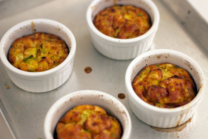 Uno spunto per il pranzo, per un aperitivo o per un pic nic: mini-frittatine con porri al forno.