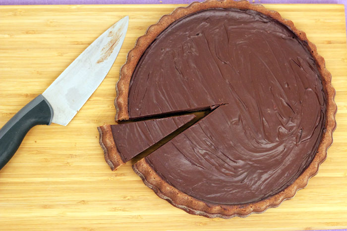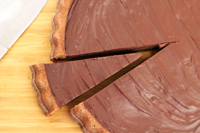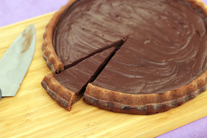 Procedimento: far sciogliere il cioccolato fondente a bagno maria e il burro nel microonde.Unire quindi i due composti. Aggiungere lo zucchero, la farina e le uova, una alla volta. Mettere il tutto in una teglia da crostata con il bordo molto profondo e cuocere in forno caldo a 180° per circa 30 minuti. Una volta raffreddata bene deve essere estratta dalla teglia e capovolta. Sciogliere quindi il cioccolato sempre a bagno maria . Aggiungere a questo la panna e farcire la base. Lasciare in frigorifero a raffreddare.
