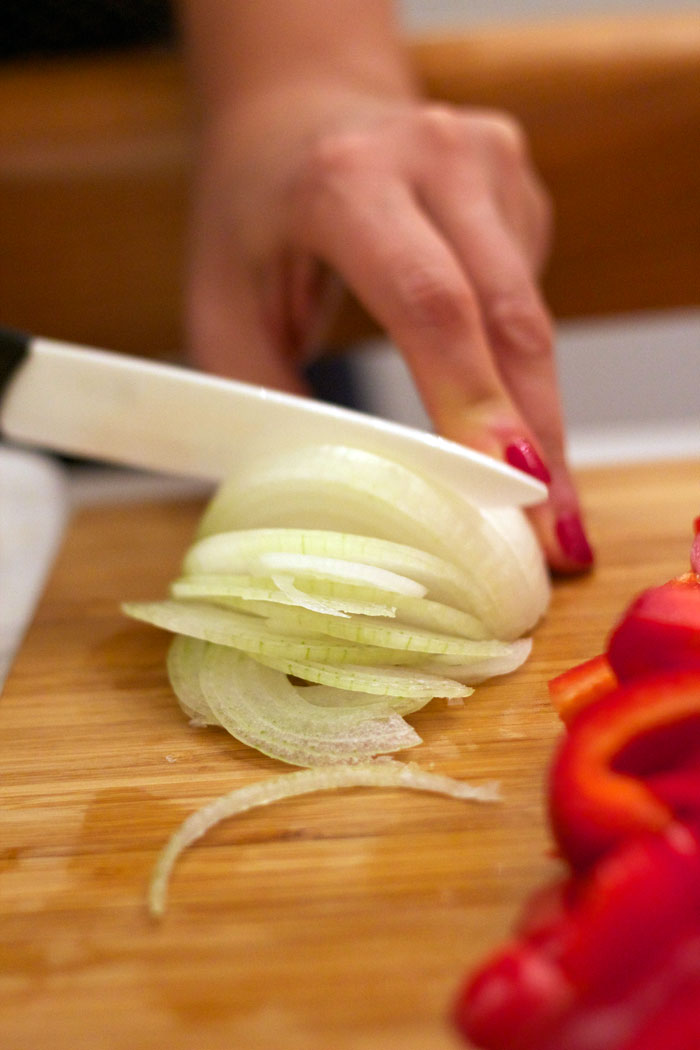Ingredienti: cipolla, peperoni rossi, peperoni gialli, sale, zucchero, olio evo, aceto, uvetta e pinoli.