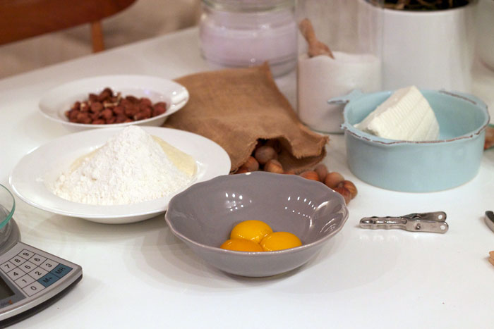 Ingredienti: 50 gr. di pistacchi, 50 gr. di nocciole, 300 gr. di ricotta fresca vaccina, 100 gr. di burro fuso, 250 gr. di farina integrale biologica, 200 gr. di zucchero, 1 bustina di lievito, 3 uova, 1 pizzico di sale.