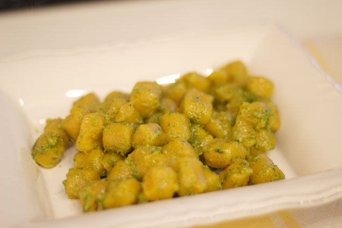Ingedienti: gnocchi artigianali (non son riuscita a farli a casa, questa volta), basilico (dritto dritto da un bel vaso del mio terrazzo), pecorino romano, parmigiano, un pizzico di sale, aglio, olio evo, pinoli. Le quantità dipendono un po’ da quanto basilico avete a disposizione.