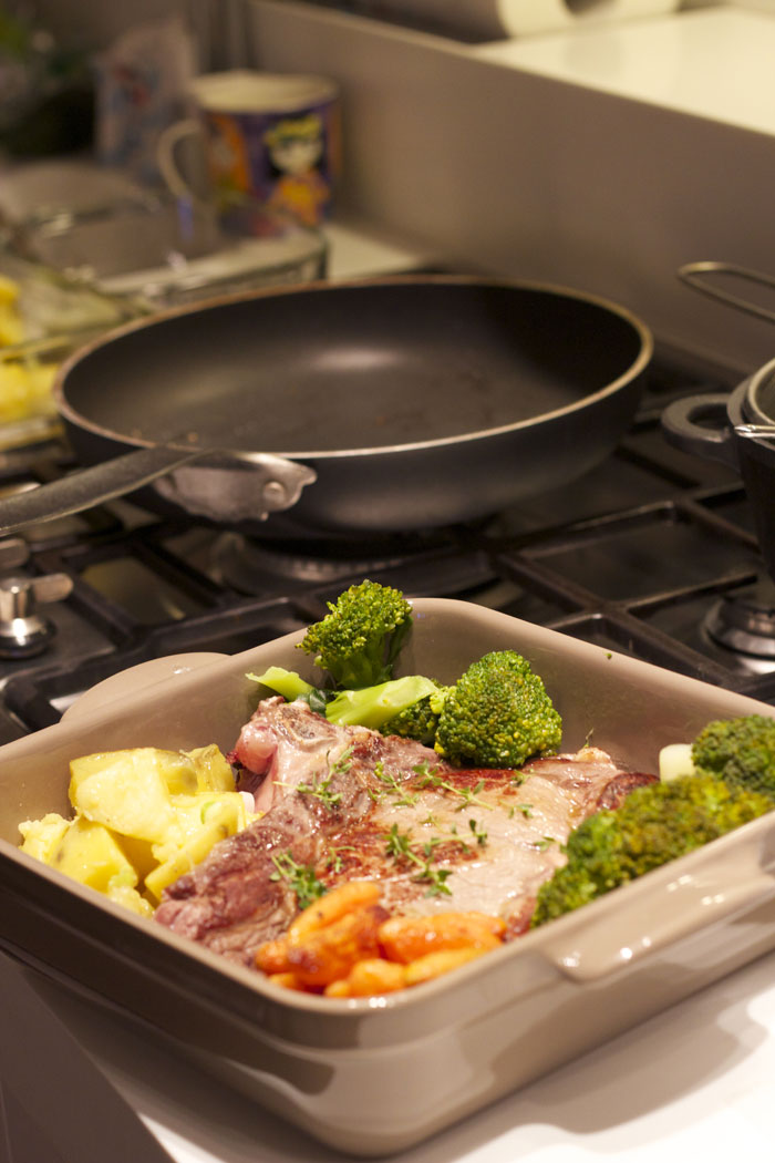 Sono arrivata a casa un po’ tardi ovviamente, tra una pedalata ed un aperitivo. Quindi ho preparato una costata alla griglia (rigorosamente al sangue) con verdure. Ecco una maniera per preparare carote, patate e broccoli in modo abbastanza sano e veloce.