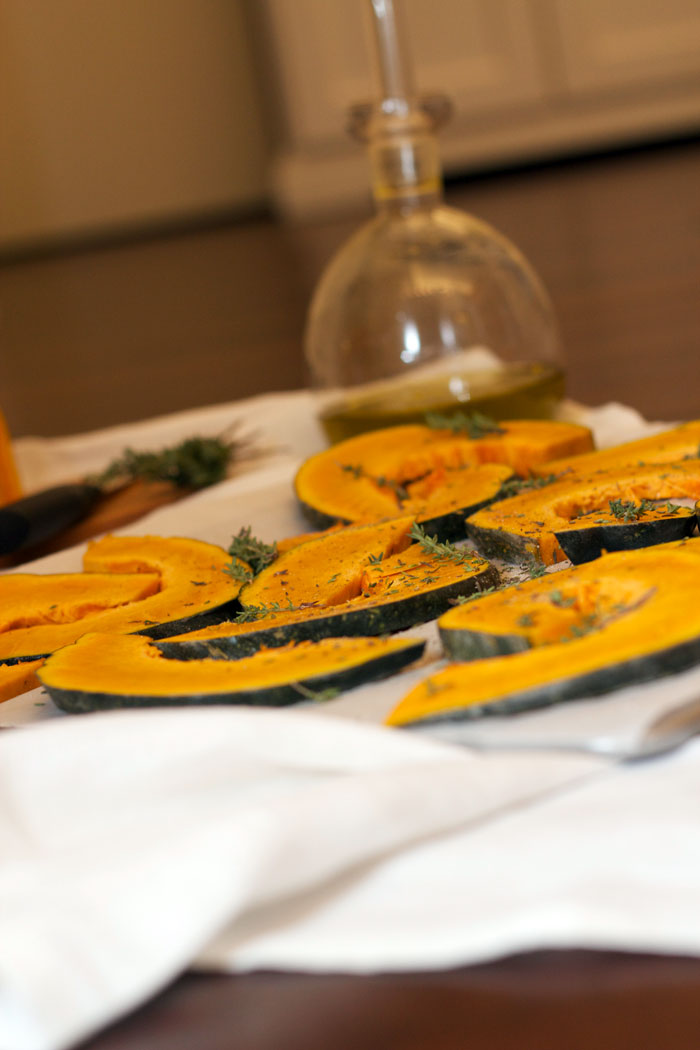 In sere come queste sento di aver bisogno della materia prima, più che di una ricetta. Mi abbandono ai prodotti. Sono una fan delle cose semplici. Lo dico sempre. Ho tagliato tutte le verdure che avevo in casa; ne ho fatto un minestrone, ma non l’ho mangiato. L’ho congelato come faccio spesso. Mi piace tagliare la verdura: sedano, carote, cipolle, erbette, fagioli e zucca. Mi piace averlo in freezer; mi rende felice. Cerco di non comprare quello industriale perchè fatto a casa con le nostre verdure, ha tutto un altro sapore. Per cena ho preparato della zucca al forno. Semplice, semplicissima ma tutt’altro che banale. Per sentirne il sapore, per apprezzarne il gusto dolce e il sapore del timo e del rosmarino. E’ la zucca dell’orto di mia zia quindi è ancora più speciale. L’ho usata per il minestrone, per un risotto (clicca qui), per una vellutata (di cui ancora non ho scritto la ricetta) e stasera così, al forno. Era intera quindi ne ho ancora un quarto abbondante. Quando mi capita questo la pulisco tutta, la faccio a fettine e la congelo perchè so che mi sarà utile per qualche bella ricettina più avanti. Certo mi servirebbe un freezer molto più grande ma questa è un’altra faccenda e, se anche lo avessi, sono certa che non mi basterebbe. Buona giornata gente!